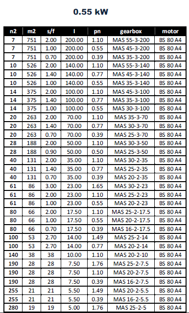 مشخصات مکانیکی گیربکس های COAXIAL با توان 0.55KW