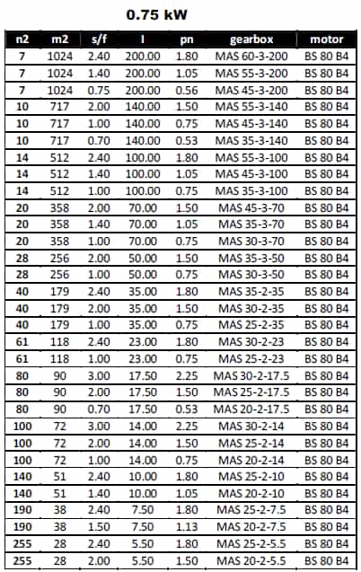 مشخصات مکانیکی گیربکس های COAXIAL با توان 0.75KW