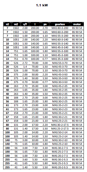 مشخصات مکانیکی گیربکس های COAXIAL با توان 1.1KW