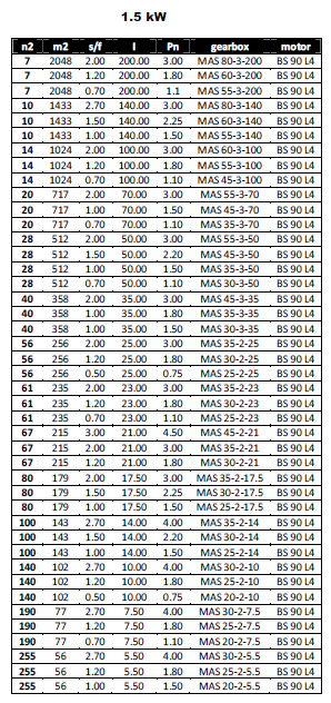 مشخصات مکانیکی گیربکس های COAXIAL با توان 1.5KW