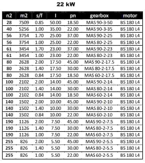 مشخصات مکانیکی گیربکس های COAXIAL با توان 22KW