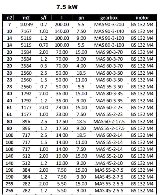 مشخصات مکانیکی گیربکس های COAXIAL با توان 7.5KW